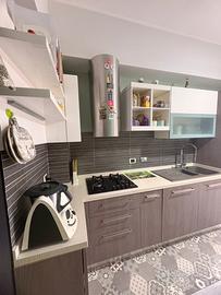 Cucina tenuta benissimo.misure 3,70 (prof 0,60) più 1,35 (prof 36 cm) piano in quarzo, anta spessa 2 cm, elettrodomestici Whirlpool, cappa da arredo FABER, lavello in fragranite