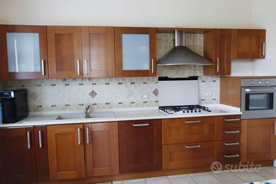 Vendo cucina color ciliegio in buone condizioni, comprensiva di piano in marmo, forno, piano cottura, lavandino e cappa.