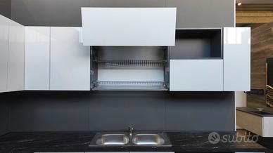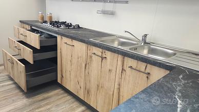 Cucina di fine serie di quasi 7 metri in due colori disponibili come da foto, viene adattata alle vostre misure grazie ad un top in laminato sp. 4 cm da nuovo e da tagliare e forare.