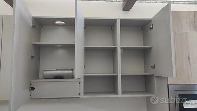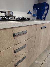 Cucina NUOVA di fine serie di ml 4.50 ed è possibile modificare la posizione degli elementi grazie ad un piano di lavoro in laminato NUOVO da tagliare e modificare (possibile sceglierlo tra più colorazioni)