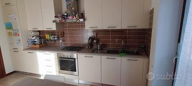vendo per trasferimento , cucina lineare + colonna separata della stessa linea con le misure : lunghezza totale 4,02 m profondità 60 cm altezza (da terra al piano di lavoro) 90 cm larghezza frigo (frigo da incasso) 60 cm piano di lavoro altezza 4 cm (in perfette condizioni, resistente a tagli e calore) misura piano di lavoro tra figo e fuochi 1,20 m piano 4 fuochi 60 cm piano tra fuochi e lavello 34 cm lavello con sgocciolatoio e 2 vasche 1,15 m laterali della cucina 5 cm l'uno altezza totale 2,40 m misure colonna : altezza 2,10 m larghezza 45 cm profondità 34,50 cm Usata poco perchè entrambi lavoriamo nella ristorazione quindi poche volte a casa per i pasti. Frigo (Electrolux) , fuochi (Franke), cappa (Franke), lavello (Franke), forno (Bosh) e lavastoviglie (Bosh, incasso di fianco al forno) compresi.