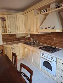 cucina nuovissima senza alcun graffio compresa di elettrodomestici forno piano cottura lavandino e frigo ad incasso il tavolo è color legno e a le sue sedie originali dello stesso colore della cucina misure della cucina 4000 più 1300 l angolo