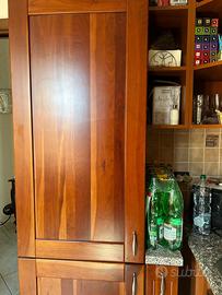 Vendo cucina in legno massello (lunghezza 273 cm, larghezza 57 cm), con elettrodomestici (frigo-congelatore, forno), cappa di aspirazione, piano cottura a 5 fuochi, tavolo in legno massello, piano lavoro marmo, pensile lunghezza 125 cm, alrezza 90 cm, smontaggio e trasporto a carico acquirente