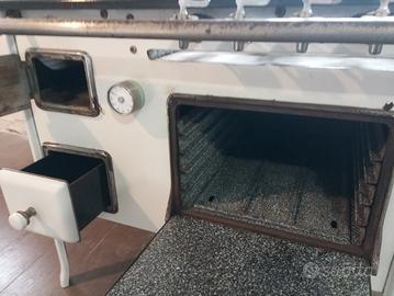 Bellissima cucina anni 30 a gas e legna, 4 fornelli a gas e uno a legna. Nonostante l'età è in buone condizioni solo le parti cromate col tempo si sono usurate. Alcuni segni dovuti all' età (in foto) si allaccia direttamente al tubo del gas