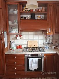 Cucina in legno massello ciliegio. Angolare, 280cm x 260cm Elettrodomestici presenti e funzionanti: forno, lavastoviglie e frigorifero. Disponibile ad Ortona, smontaggio e trasporto a carico dell'acquirente.