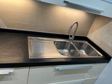 Blocco Piano cucina cm 2,40 con doppio lavello in acciaio della franke credenze sopra con scolapiatti doppio. Blocco colonna forno