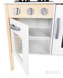 Questa cucina in legno non solo offre divertimento, ma sviluppa anche l'immaginazione e stimola il pensiero creativo, aumenta le capacità manuali. Può diventare un'ispirazione per un bambino e contribuire al successo di un futuro chef.