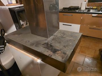 cucina con lavello miscelatore piano cottura e cappa a T in acciaio satinato, funziona tutto ma in alcune parti senza pellicola bianca cone da foto , quindi diventa tutta dj colore marrone , la si può dipingere di che colore si vuole , prezzo simbolico 50€.