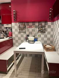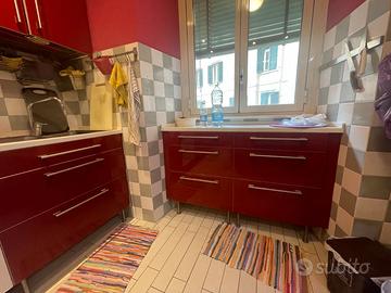 Cucina Ikea rossa compresa di Lavastoviglie (sportello bianco), lavandino, isola, tavolo e sedute. Esclusi frigorifero, fornelli, cappa e qualsiasi oggetto o altro elettrodomestico. Smontaggio e ritiro a carico dell'acquirente. Roma - Prati Pronta dal 1° maggio
