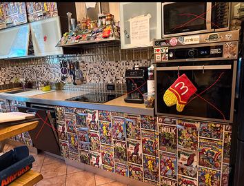 Le misure sono lunghezza 3.45 m, altezza 2.50 m, profondita 60 cm con decoupage Marvel vintage.