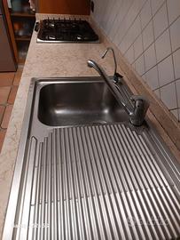 Cucina in buone condizioni con lavello in acciaio Franke e piano cottura rex 5 fuochi con appoggio in ghisa con piano in marmo