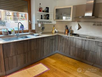 Cucina Marchio tedesca: Hacker Kitchen Colore legno naturale e avorio In ottimo stato. Top e alzatina interamente in pietra avorio ( valore 2000€!) Mancante del battiscopa a terra. Si vende a causa di un trasloco. Suddivisa in due porzioni Una prima porzione a «L» Lato 1 : 280cm comprensiva di piano cottura a 5 fuochi da 90cm e cappa da 1mt . Modulo angolare (80x80) con carrello angolo girevole interno a due piani che si co ngiunge al lato 2 Lato 2: 300cm comprensiva di lavello 90cm con doppia vasca. Lato 3 : 255cm comprensivo di colonna 60 cm per forno e microonde a incasso Lato 4: 168 cm penisola comprensiva di modulo da 60cm e modulo angolare con carrelli estraibili a due piani. Esclusi dalla vendita frigorifero, lavastoviglie, forno, miscelatore. € 1.500,00 La cucina è già smontata, imballata Ritiro a Vs carico presso il deposito in zona Pomezia. É possibile chiedere ai traslocatori che si sono occupati dello smontaggio e trasloco di gestire la consegna e il montaggio ( a Vs spese)
