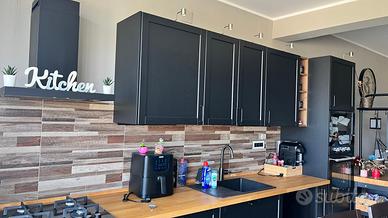 Cucina ikea 4 metri, comprensiva di vasca unica nera e rubinetto, forno elettrico, forno a microonde, cappa nera, piano cottura! Nuova acquistata da un anno e mezzo, mai utilizzata! color nero e top legno bellissima! Esiste spazio per libera installazione lavastoviglie