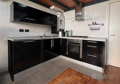 Cucina completa ad "L", in ottime condizioni, nero lucido: stile e praticità al top.