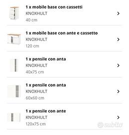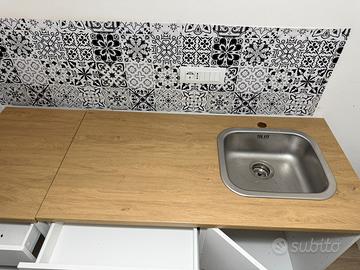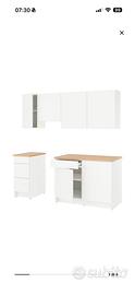 misura 220x61x220 In ottime condizioni qulache segno parte posteriore non visibile . Ma perfettamente funzionale I frontali bianchi, piano di lavoro effetto rovere, Con vasca Fyndig Predisposizione per lavello Valore ilea 329€