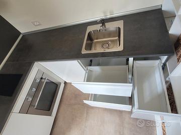 Vendo cucina Ikea, montata ma mai usata. La cucina ha un frigo (basso), un forno (la griglia c'è ma non è in foto), un piano ad induzione per due pentole, cappa aspiratrice, lavandino, cassetti, e mensole mobili. La cucina è stata acqustata 4-5 anni fa, installata, ma non è stata mai utilizzata. Vendo a 1200€ trattabili (nuova 2500), o alla prima offerta ragionevole. La cucina andrà poi smontata e trasportata a carico dell'acquirente (ma vi do una mano). Forno a microonde (mai usato, e non in foto) disponibile in aggiunta. Misure cucina, in foto