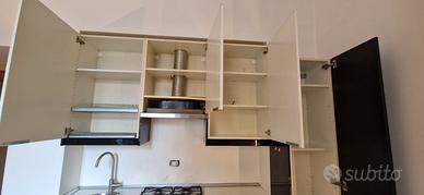 cucina ikea compresa di lavandino, miscelatore e cappa filtrante, colore bianco e nero lucidi, top bianco. Misure : 3 basi da 60 cm l'una altezza 90, con colonna accanto di altezza 190 cm e profonda 37 cm. Oltre 3 pensili sempre larghi ognuno 60 cm e alti 90 cm. Sono compresi lo zoccolino e la tamponatura. Lo smontaggio è incluso nel prezzo mentre il trasporto è a carico dell'acquirente. Chiamare se interessati al 339 5441808