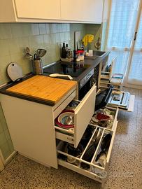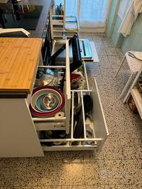- 1 modulo METOD con due cassettoni, di cui il primo con due cassettini per posate ed utensili nella meta superiore, e piano di lavoro in sommità (60Lx90Hx60L);