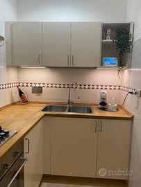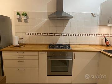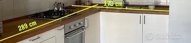 Vendo cucina in ottimo stato con top in legno vero. Compresi forno ,fuochi gas e lavabo in acciaio. La cucina presenta due led che rendono il mobile davvero grazioso. La cappa è funzionante, presenta alcune macchie dovute ad un lavaggio con prodotto non compatibile. È possibile visionarla su richiesta. Trasporto e smontaggio a carico del acquirente. Pagamento alla consegna preferibilmente in contanti o bonifico istantaneo.