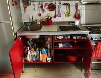 Cucina Ikea Udden rossa fuori produzione. Base lavello con due sportelli e ripiani interni. Qualche segno di usura. 250€ Dim 128x64 cm n. 2 Mensoloni 50€/cad = 100€ con qualche segno di usura