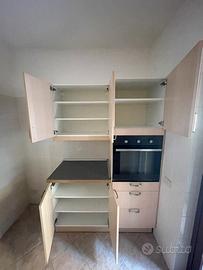 Cucina ikea usata lunghezza lineare 3,8 m, colonna forno, fornelli a 4 fuochi, cappa , lavello. Il top é legermente rovinato nella parte dietro del lavello. Una gamba di plastica della colonna rovinata.
