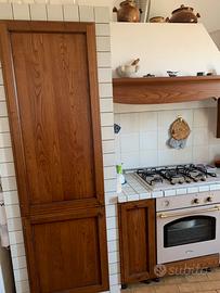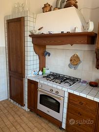 Vendo cucina in ottimo stato, con frigo -congelatore, cucina a gas, non comprede la lavatrice che è sostituita dal mobiile base originale visibile nell’ultima foto. Lunghezza cm 345. Il top e’ formato da piccole piastrelle in ceramica. Smontaggio e trasporto a carico del compratore.