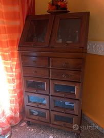 - Credenza a due pezzi separati superiore e inferiore con riporti in maiolica e ripiano in marmo pregiato cosi come la struttura;
