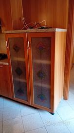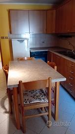 cucina angolo lunga 3.65 e angolo 63cm. tavolo 1.30x80 con 4 sedie. il piano della cucina ha una imperfezione vicino al lavandino. forno funzionante