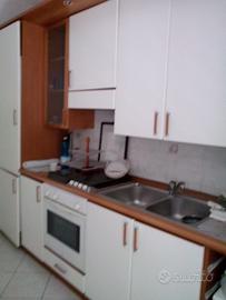 Vendo cucina completa, in legno di ciliegio con ante bianche e dettagli color legno caldo. Comprende forno, piano cottura a 4 fuochi, lavello doppia vasca e tanti vani capienti per organizzare tutto al meglio. In buone condizioni e pronta da installare.