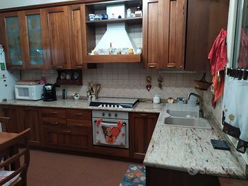 Cucina in legno con top in granito. Forno gas e lavello della Franke.