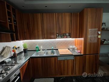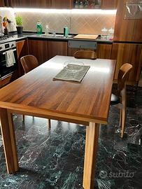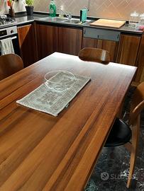 Cucina in legno di ciliegio, comprensiva di tavolo allungabile fino a 10 persone, 6 sedie, frigo e congelatore. Misure: 245 cm lato sx 300 cm frontale 237cm altezza 60cm profondità top in marmo di 3cm Per info contattatemi