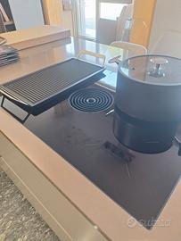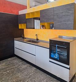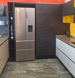 CUCINA LACCATA OPACO TRIPLO STRATO CON SISTEMA DI APERTURA A GOLA IN FINITURA NERO OPACO COLONNE CON VANO PORTASCOPE E DISPENSA, PENISOLA E PIANO COTTURA A INDUZIONE BORA CON CAPPA INTEGRATA FILTRANTE, TOP IN QUARZO SP. 2 CM, FRIGORIFERO DA ESTERNO HAIER TOTAL NO FROST FINITURA ACCIAIO INOX, LAVELLO SOTTOTOP ACCIAIO INOX, FORNO BEKO VENTILATO MULTIFUNZIONE 60 CM IN VETRO NERO, LAVASTOVIGLIE SCOMPARSA TOTALE ELECTROLUX