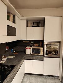 Vendo cucina angolare in laminato bianco-grigio effetto pietra completa di elettrodomestici (forno, microonde, piano cottura gas, cappa aspirante e lavastoviglie). Misure 3,60 x 1,95