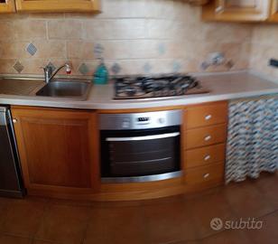 Vendo cucina in legno color miele in buone condizioni, di ottima qualità. Era stata fatta su misura da un falegname quindi artigianale, molto robusta e resistente. Struttura in legno listellare impiallacciato, sportelli in legno massello. Non comprende piano, lavastoviglie, forno, piano cottura, lavandino e cassettiera. La cappa è sprovvista di motore. Dimensioni: 2 metri e 80 di lunghezza, larghezza 60 cm. Visibile smontata.
