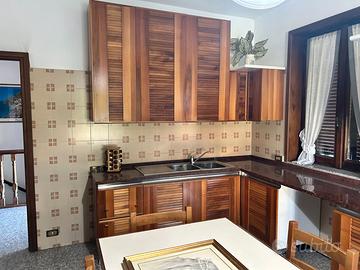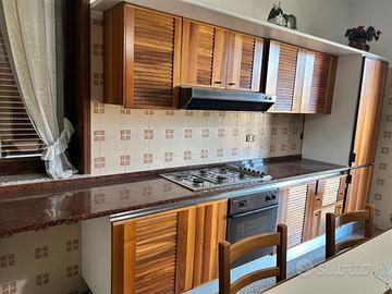 Cucina in legno in buone condizioni, con frigorifero, congelatore, piano cottura