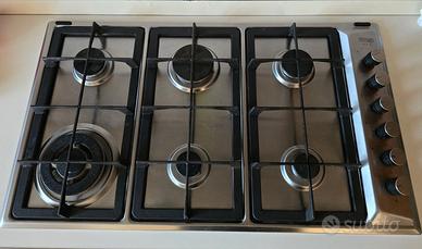 Vendo cucina come da foto, con possibilità di posizionare la colonna forno a DX o a SX, larghezza lineare cm 405 o cm 345 angolare cm 120 o cm 180 altezza cm 242, con piano cottura DELONGHI PLI 69 86cm 6 fuochi griglie in ghisa, cappa inox da 120cm, lavello doppia vasca, cassettiera e armadietti dispensa. Per info 3394580764 anche WhatsApp.