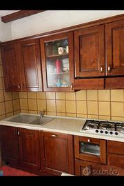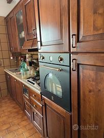 Cucina in legno con due lavandini in ceramica e piano cottura, completa di frigorifero a colonna con congelatore a cassetti; forno. Mobile predisposto per lavastoviglie. Eletteodomestici Piano cottura Franke Forno rex Frigorifero eletrolux