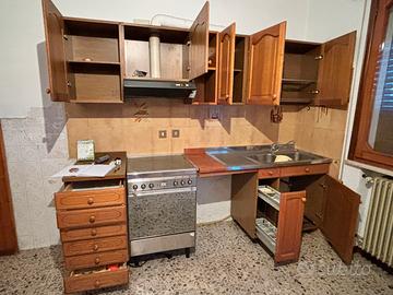 Vendo cucina angolare in legno completa di pensili, basi, lavello inox, cappa e forno con piano cottura.