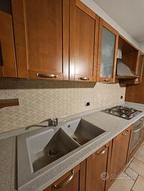 La cucina è usata e in buone condizioni con ampio spazio di lavoro sulla penisola. Nell'offerta sono compresi: frigorifero (60x60) e freezer, forno (Rex), fornello a 5 fuochi (Franke) ad esclusione della lavastoviglie.