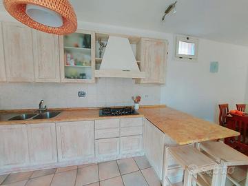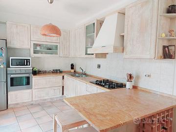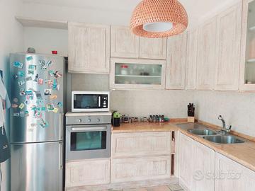 Vendesi cucina angolare completa di mobili e lavello, caratterizzata da un elegante stile shabby chic / rustico con finitura in legno decapato bianco. La cucina è molto capiente e comprende una comoda penisola snack. IL PEZZO FORTE: Piano di lavoro (Top) interamente in VERO MARMO, materiale di alto pregio, estremamente resistente e duraturo, completo di alzatina coordinata lungo tutto il profilo. MISURE INDICATIVE: Parete Principale: circa 3 metri lineari. Penisola snack: circa 1,60 - 1,80 metri. Profondità Top: standard 60 cm. Moduli: Composta da basi e pensili con misure standard (moduli da 60 e 90 cm). COSA È INCLUSO NELLA VENDITA: Tutta la struttura dei mobili (basi, pensili e vetrinetta). Top in Marmo (già sagomato per lavello e piano cottura). Lavello a doppia vasca in acciaio inox + miscelatore incluso. Cappa a camino coordinata e barra sottopensile porta utensili. ⚠️ NOTA BENE: Tutti gli elettrodomestici (frigorifero, forno, microonde.) SONO ESCLUSI dalla vendita. CONDIZIONI DI VENDITA: Prezzo: 900€. Smontaggio e Ritiro: A carico esclusivo dell'acquirente (Zona: Capraia e Limite - FI). Disponibilità: Ritiro previsto nei mesi di giugno, luglio o agosto (date da concordare causa trasloco). Disponibile per visione su appuntamento. Per misure più dettagliate o altre foto, non esitate a contattarmi!