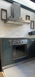 Vendo una cucina realizzata in legno, completa di piano cottura a filo Smeg Professional, lavello filo piano da 75, forno Elettrolux da 60 ad incasso. Le basi sono così composte: 30(base anta)+60(base forno)+ 50(base cassetti)+45(base ad angolo con ripiani)+50(base cassettone 2 cestoni)+45(base angolo con magic corner)+80(base lavello con ante e ripiano)+60(base x lavastoviglie senza elettrodomestico). Inoltre , mobile dispensa da 60, cappa e microonde. Il piano lavoro sarà da sostituire.