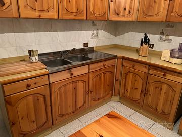 Vendo cucina in legno mai utilizzata,situata in appartamento mai vissuto….compresa di tavolo in legno come da foto e n4 sedie in legno ,nuove.
