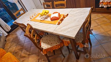 Vendo cucina in legno completa di lavello a 2 vasche, piano cottura a 5 fuochi, forno e tavolo con 6 sedie.