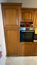vendo cucina in legno di rovere chiaro, ante in legno massello, lunghezza m 4,45 con colonna frigo, semicolonna forno, scolapiatti sopra al lavello, lavello a due buche con scolapiatti, rubinetto miscelatore nuovo, cappa aspirante sopra al piano cottura.