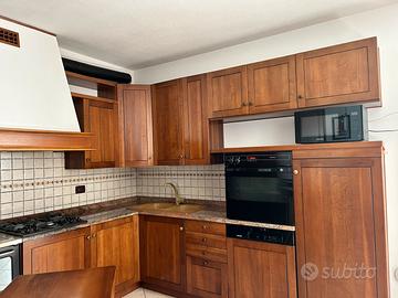 Vendo cucina ad angolo in legno color noce nazionale completa di: piano in marmo, frigorifero ad incasso, forno ad incasso, piano 4 fuochi a gas, cappa aspirante e microonde. Insieme alla cucina vendo anche tavolo ottagonale con panca in legno e 3 sedie. Per informazioni scrivetemi in privato al numero 3488390073. Prezzo 850 € trattabili