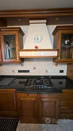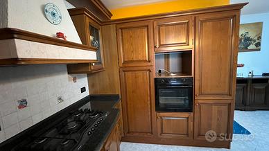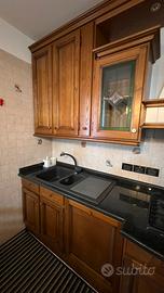 Vendo cucina in legno massiccio con ripiano in granito, lavandino Franke in fragrante nero con un lavandino grande, uno piccolo e il ripiano a scolo, tavolo con prolunga e 4 sedie il tutto in massiccio. Ingresso specchiato con armadio di 3 porte. Dimensione ingresso 1,70x1,20x2,15