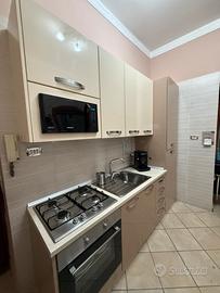 Frigo ad incasso, forno, piano cottura acciaio inox 4 fuochi, forno microonde Samsung, lavello ad una vasca, colapiatti. Se interessati anche tavola con 3 sedie in coordinato alla cucina e 2 mensole. Per ulteriori info contattatemi in privato