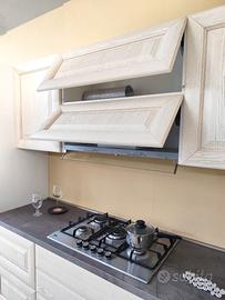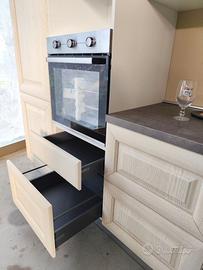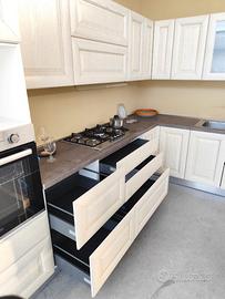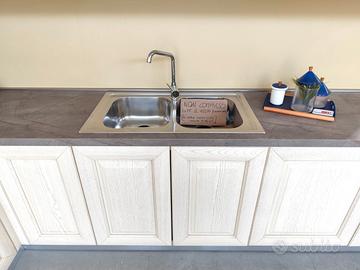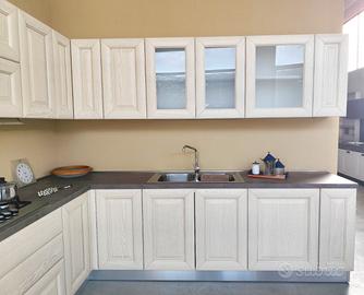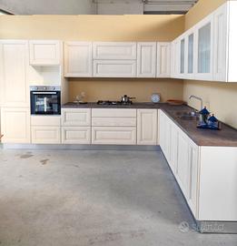 Cucina fine serie scontata a più di metà prezzo, modello Lola ditta Arrex Le Cucine. Per questo modello possiamo spostare tutti gli elementi in base alle vostre misure e alla posizione degli scarichi del lavello, poiché INCLUSO nel prezzo c’è un piano di lavoro in laminato ancora da tagliare e forare, a scelta tra diversi colori. Tutte le ante hanno la chiusura ammortizzata data da cerniere rallentate della nota ditta austriaca Blum. Lo stesso vale per cassetti e cestoni. Le maniglie saranno a scelta tra i due modelli disponibili in foto, sempre fino ad esaurimento scorte di uno o dell'altro. Tutti gli schienali sono rinforzati con uno spessore di 6 mm. Lo zoccolo è H12 cm in alluminio e l’alzatina da 1x2 cm è sempre in alluminio. Le ante sono in legno bianco decapé. Gli elettrodomestici INCLUSI nel prezzo sono i seguenti: -Frigorifero 320 lt lordi -Forno ventilato multifuzione -Piano cottura 5 fuochi inox -Cappa ad incasso inox da 90 cm -Lavello 2 vasche inox La lavastoviglie non è inclusa ma c’è la predisposizione. Abbiamo disponibili diversi modelli sempre in promo fino ad esaurimento scorte. Siamo disponibili per trasporto e montaggio, con prezzo da calcolare in base ai km ed al piano. C’è la possibilità di pagamento rateizzato con finanziamento. Andrea
