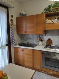 Cucina di 3,15 metri lineare in legno - rovere compresa di elettrodomestici (doppio lavello, piano cottura a gas e forno elettrico entrambi SMEG, cappa con filtro FABER ) tavolo con 2 sedie e tre mensole.