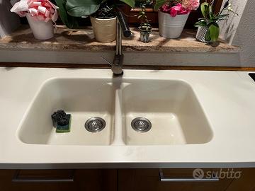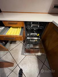 Cucina in legno rovere massello completa di elettrodomestici funzionanti, con piano in Corian (con certificato) comprensiva di tavolo (no sedie). Smontaggio e trasporto a carico dell’acquirente